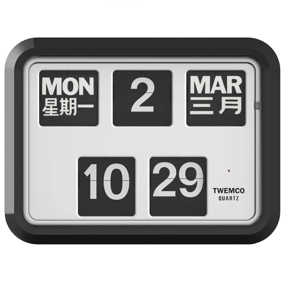 Large Perpetual Calendar. Twemco clocks are manufactured with the highest quality and reliability. Practically maintenance free once started running. Truly styles meet technology. Clock manufactured from injection molded ABS case and clear acrylic glass cover, with German Quartz movement.