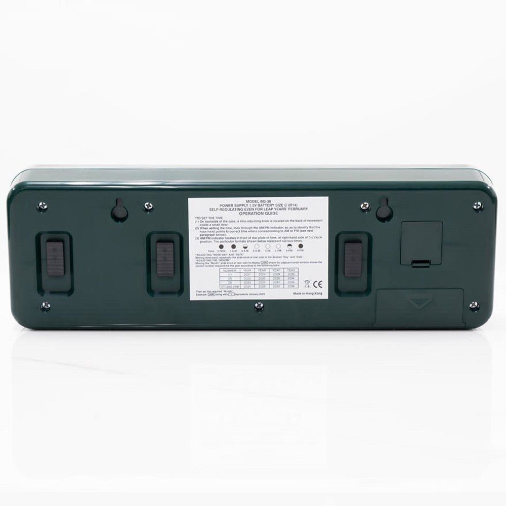 Twemco clocks are manufactured with the highest quality and reliability, and it is incorporated with perpetual calendar. Practically maintenance free once started running. Truly styles meet technology. Clock manufactured from injection molded ABS case and clear acrylic glass cover, with German Quartz movement.