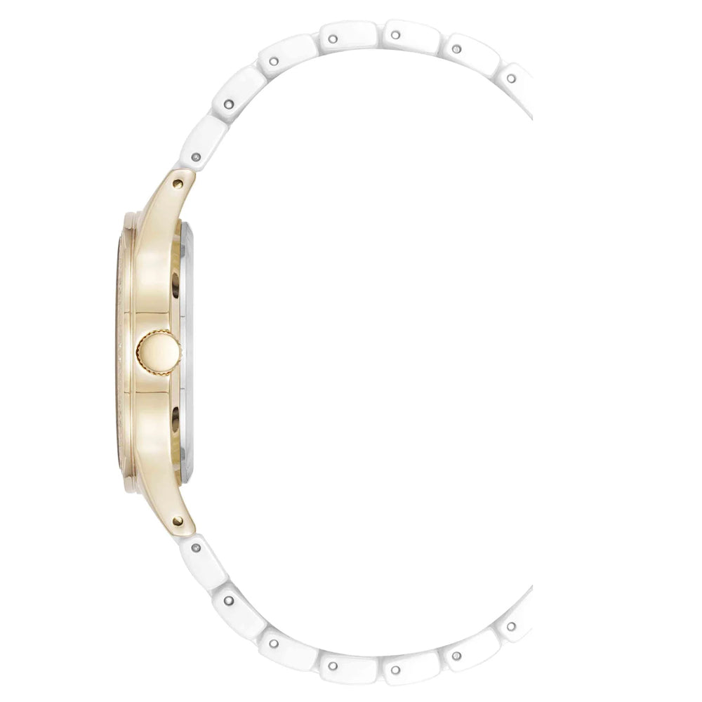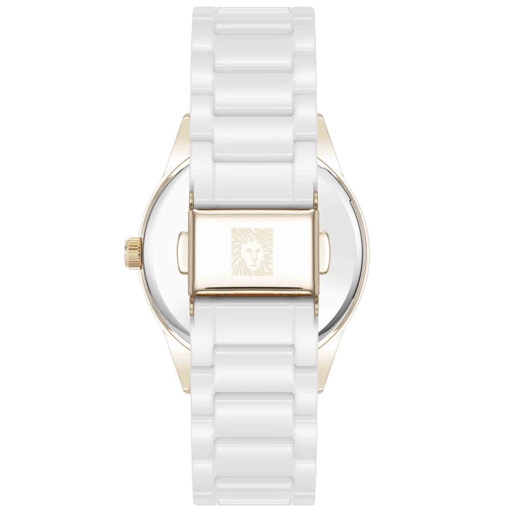 • Anne Klein Floral Dial White Ceramic Bracelet Ladies Watch AK/5172GPWT