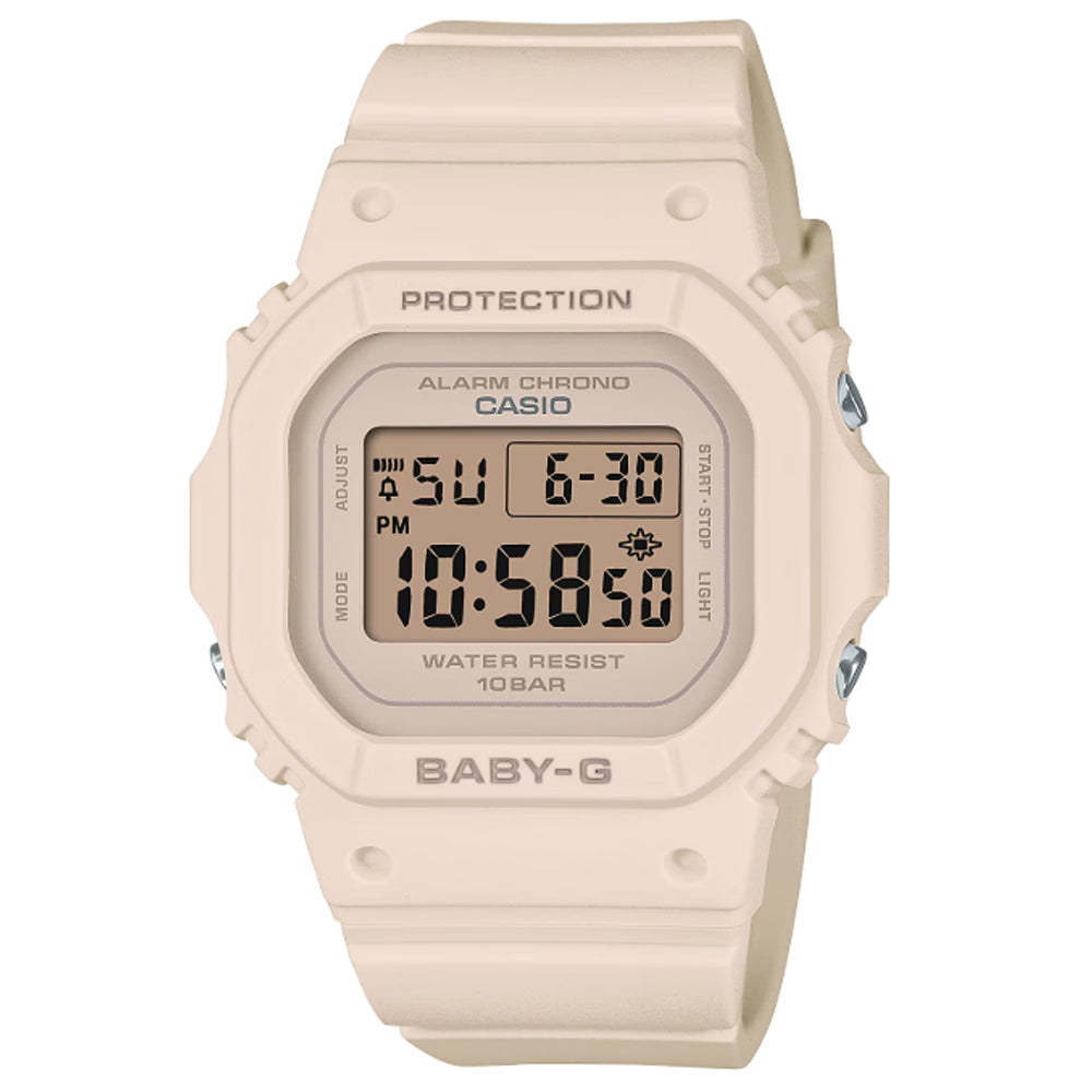 The iconic BABY-G look you love — a compact, casual watch for your active life. The smaller and slimmer BGD-565 is designed to appear flat when viewed from the side for an even thinner look. Tough shock-resistant construction and 100-meter water resistance in a versatile design to match any fashion statement you choose, this watch is a great accessory any time of year.