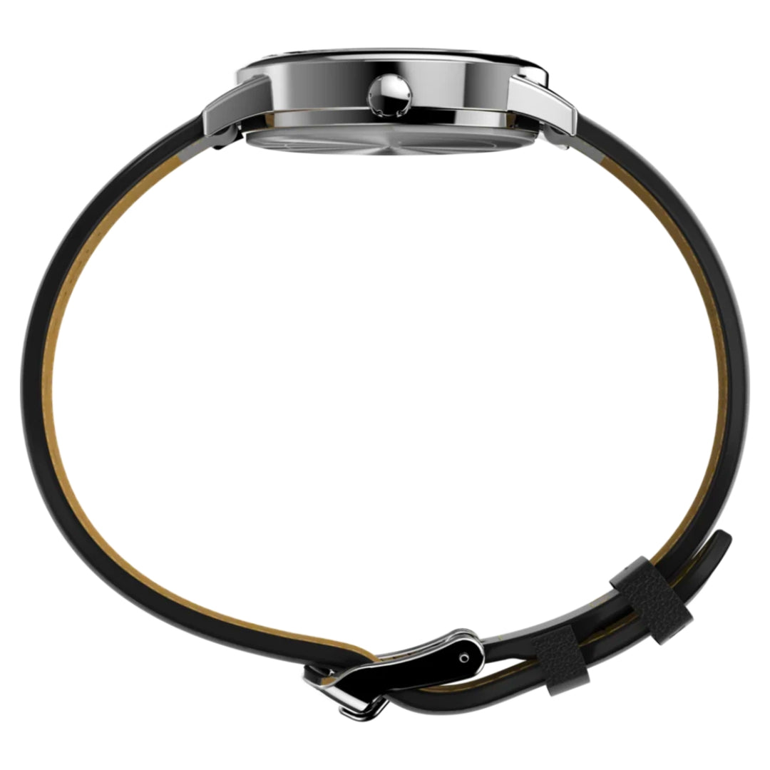 Since 1977, the Easy Reader® has been a timeless favourite, now reimagined for sustainability. This iconic watch now features an eco-conscious vegan leather strap, expertly crafted from a blend of apple peel, wood fibre, and waterborne PU. Designed to replicate the look and feel of traditional leather, this innovative material significantly reduces its carbon footprint. Highlighted by an Easy-to-read white dial with classic black hour markers, the Easy Reader® also boasts the signature INDIGLO® backlight for effortless readability. Complemented by a sleek 30mm case in elegant silver tones, this modern update combines classic design with eco-friendly innovation.