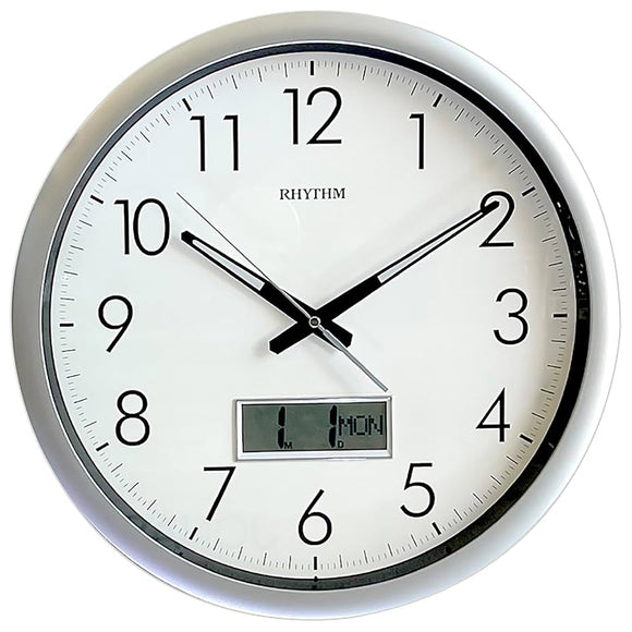 Enhance your space with the sleek and modern Rhythm LED Analog Wall Clock CFG702NR19. Crafted with a premium aluminium-like plastic casing and a glass crystal. The quiet sweep second hand ensures uninterrupted serenity, while the LED date display adds a touch of practicality to its elegant design.