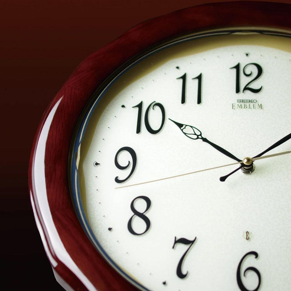 - Seiko Emblem Oak Wood Piano Finish Wall Clock AHS521B
